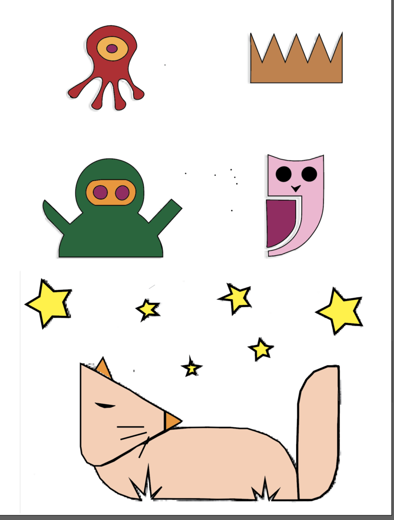 Here is the first assignment that was completed in class. It was all about learning how to use the Wacom boards and outline and colour in different figures.